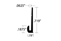 Pinch Fit J-Cap -Se adapta a 9/32" - 5/8" Reveal Acabados superficiales: anodizado transparente, anodizado satinado, acabado laminado, pintado