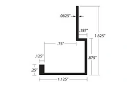 EdgeTrim con tapa en J profunda - Se adapta a 3/4", 3/4" Reveal Acabados superficiales: anodizado transparente, anodizado satinado, acabado laminado, pintado