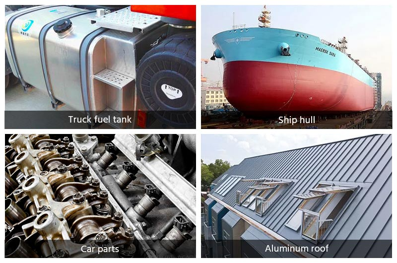 É comumente usado para cascos, conveses de barcos, carrocerias de caminhões e vasos de pressão.